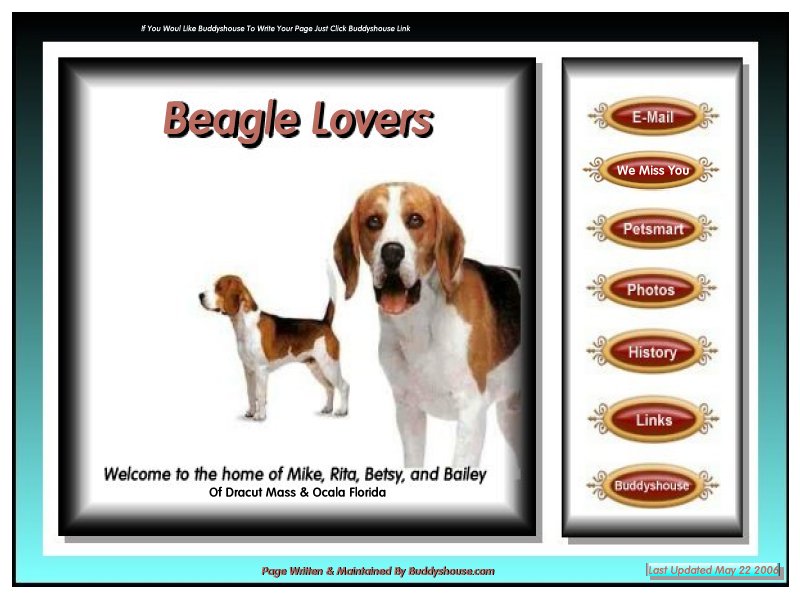 A Tribute To Our Beloved Dog FamilySee Some Photos Of Our Kids Betsy & Baily A Good Place For Behavior Training Your BeagleSome Of Betsy & Baileys Favorite LinksA Link Back To The Author Of beagoes.comA Little History & Interesting Reading On BeaglesE-Mail Mike, Rita,Betsy or Bailey